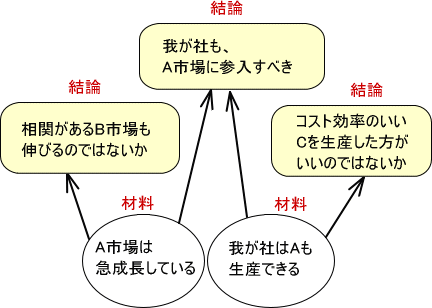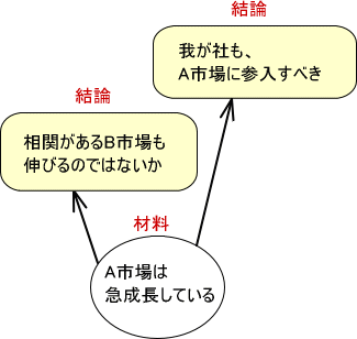 だから、図を帰納法で表すと、「A市場は急成長している。我が社はAも生産できる。だから、我が社もA市場に参入すべき」となります。