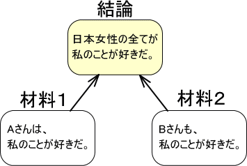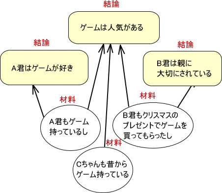 図を見ると、いずれの「材料」も、「結論」を向いていることがわかります。
